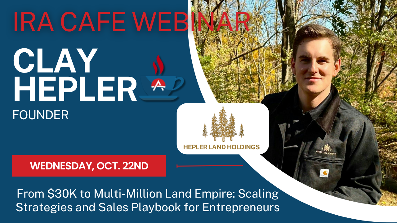 Get early access to the IRA Café featuring land investor Clay Hepler. Discover how he scaled from $ 30,000 to millions.